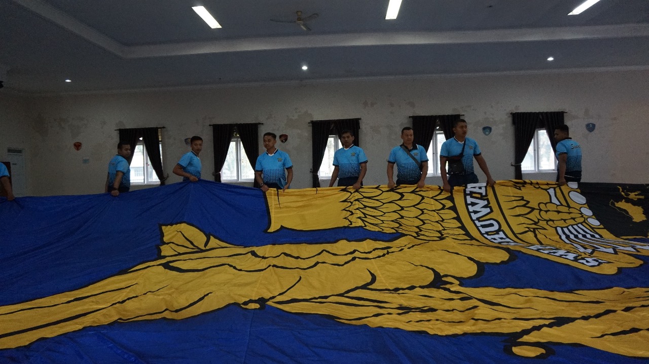 Margahayu || HSB – Koharmatau. Sejumlah teknisi dan Rigger Sathar 72 menggelar bendera Giant Flag Swa Bhuana Paksa di gedung Rachmat Samdani Depohar 70. Kegiatan ini dilaksanakan dalam rangka perbaikan dan pemeliharaan bendera Giant Flag Swa Bhuana Paksa. Proses pemeliharaan yang berlangsung selama dua minggu ini melibatkan pemeriksaan awal, perbaikan, dan pemeriksaan akhir untuk memastikan semua sisi bendera dalam kondisi prima.