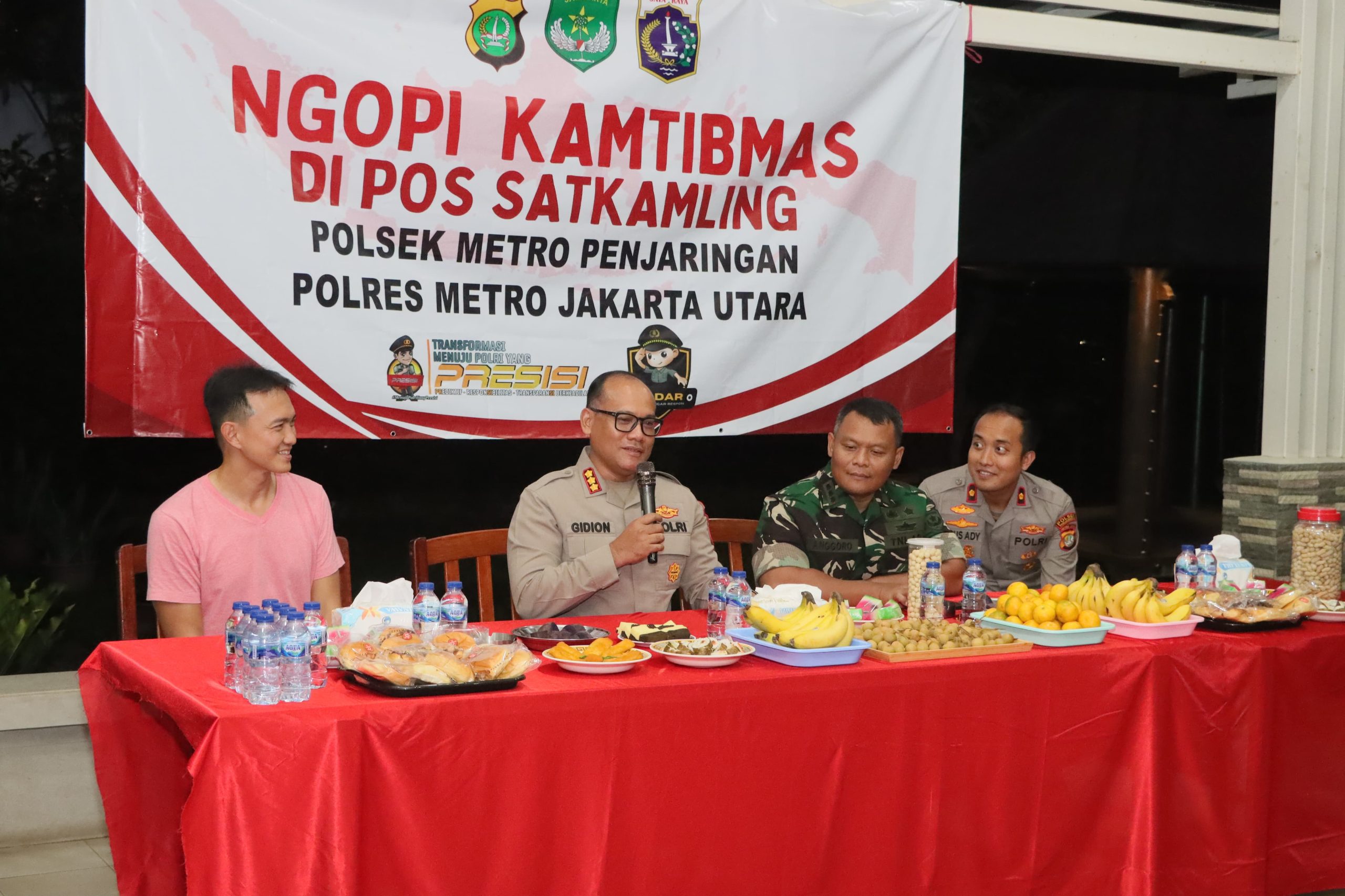 Jakarta || HSB – Kapolres Metro Jakarta Utara Kombes Pol Gidion Arif Setyawan menggelar Ngopi Kamtibmas di Kantor RW Jl. Pinisi Kapuk Muara, Penjaringan, Kamis (11/7/24) malam.