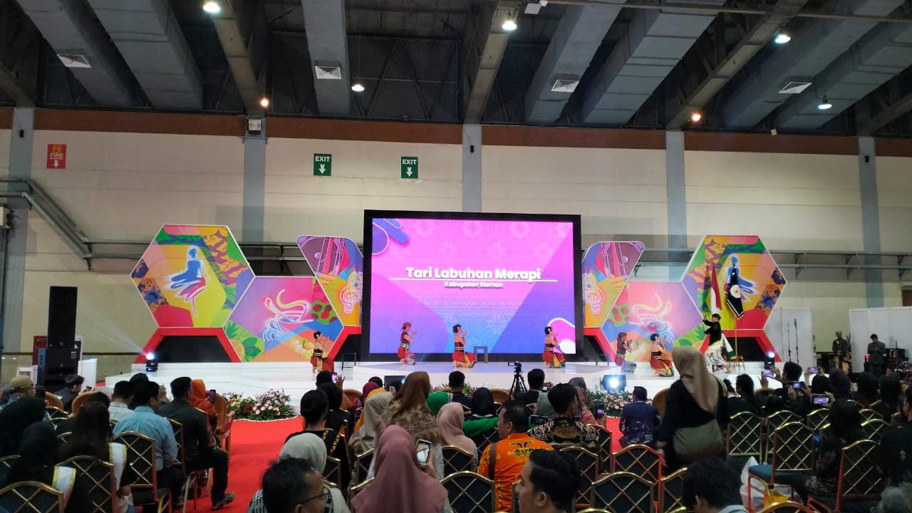 Penari dari Kabupaten Sleman tampil sebagai peserta pertama dengan menampilkan tarian bertema Tari Labuhan Merapi.