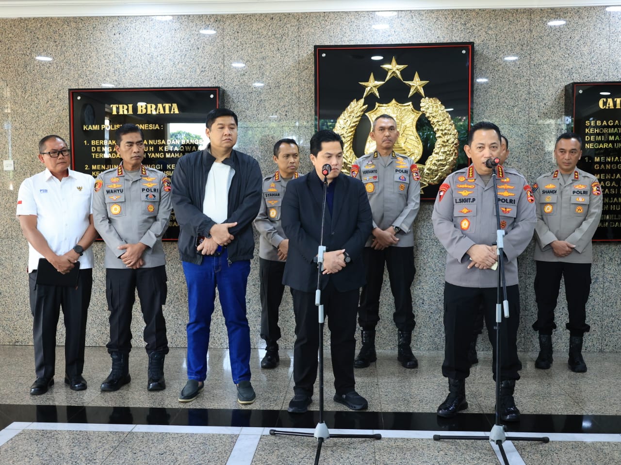 Dalam kesempatan ini, Erick pun menyampaikan apresiasi kepada Kapolri dan jajarannya yang ikut mendukung pesepakbolaan Indonesia menjadi lebih baik. Ia pun mencontohkan bagaimana pengamanan agenda tim nasional yang dilakukan Polri.