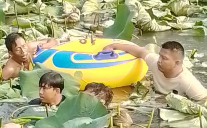 Tim SAR yang tiba di lokasi segera melakukan pencarian. Nurhadi ditemukan dalam keadaan selamat, namun Saan Sulaeman ditemukan telah meninggal dunia. Diduga, ban atau pelampung yang digunakan korban bocor terkena tusukan teratai, menyebabkan korban tenggelam.