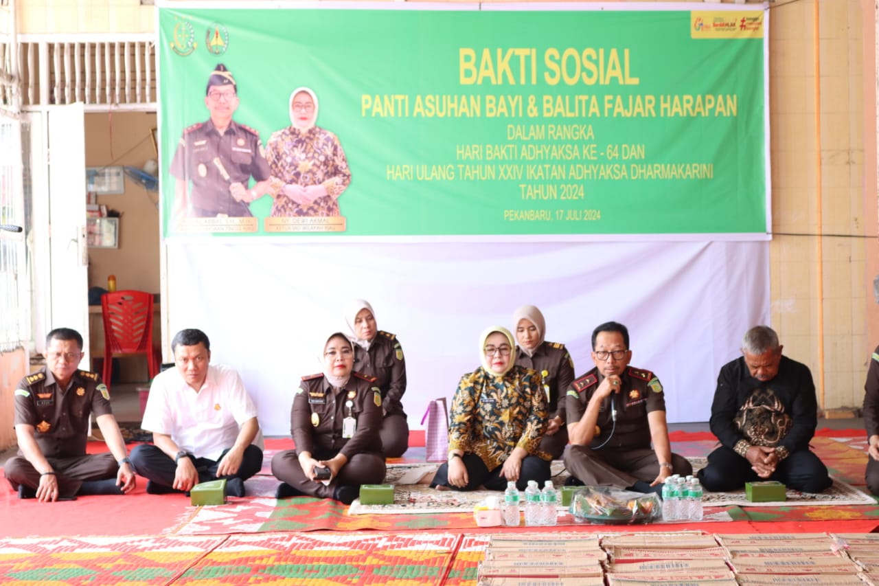 PEKANBARU – Kejaksaan Tinggi Riau menggelar Kegiatan Anjangsana dan Bakti Sosial, Rabu (17/07/2024) di UPT Panti Sosial Husnul Khotimah, Panti Asuhan Bayi dan Balita Fajar Harapan dan Kediaman Purnaja Kejaksaan Tinggi Riau Jalalludin Nasution.