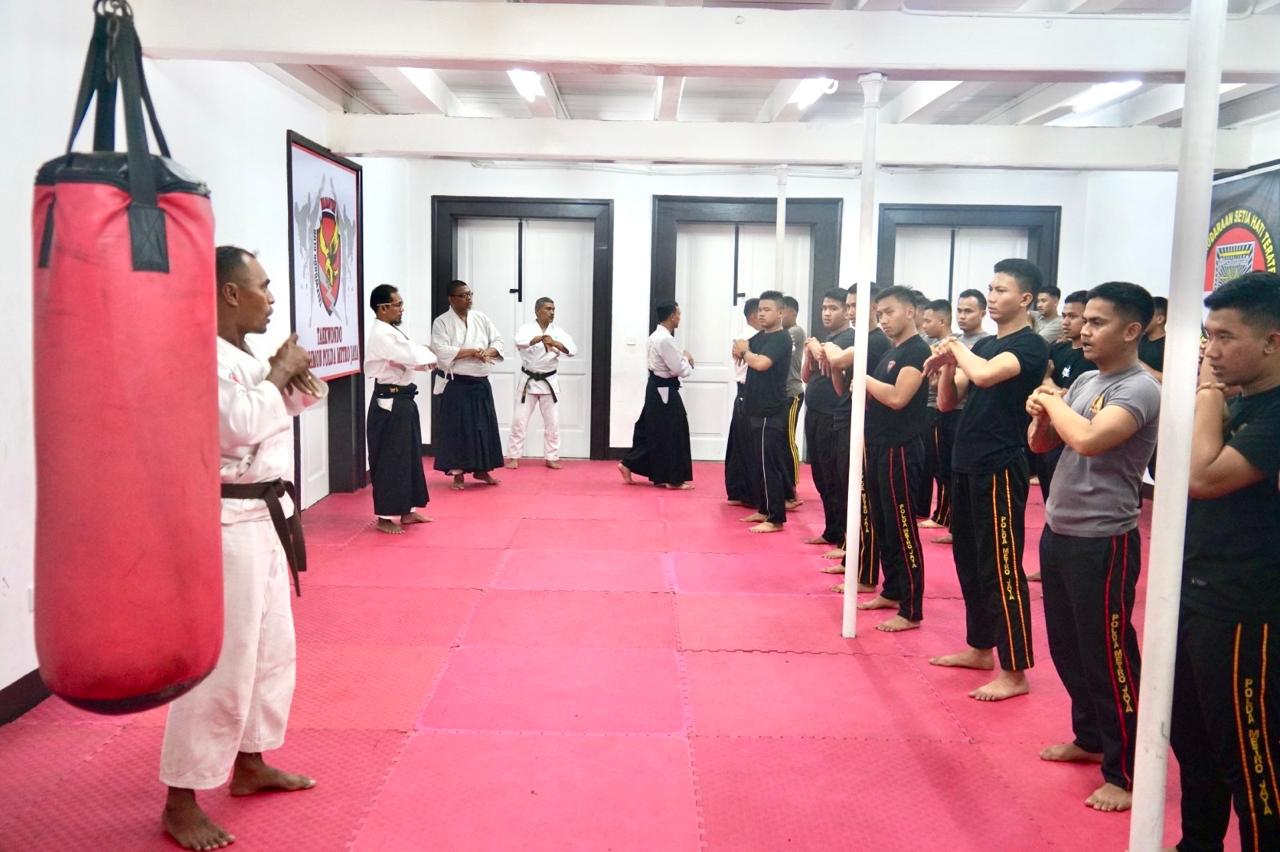 Para Personel Satuan Brimob Polda Metro Jaya dengan penuh semangat mengikuti kegiatan beladiri ini, selain untuk meningkatkan kemampuan beladiri, juga untuk menjaga kesehatan tubuh.