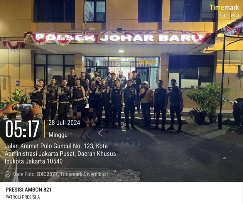Jakarta Pusat || HSB – Tim Patroli Perintis Presisi Satuan Samapta Polres Metro Jakarta Pusat bersama Polsek Johar Baru dan 3 Pilar berhasil mengamankan 2 remaja yang diduga hendak melakukan tawuran di Jl. Kramat Jaya Baru RT 01/10 Kelurahan Johar Baru Kecamatan Johar Baru Jakarta Pusat, Minggu (28-7-2024) sekitar pukul 04.00 WIB.