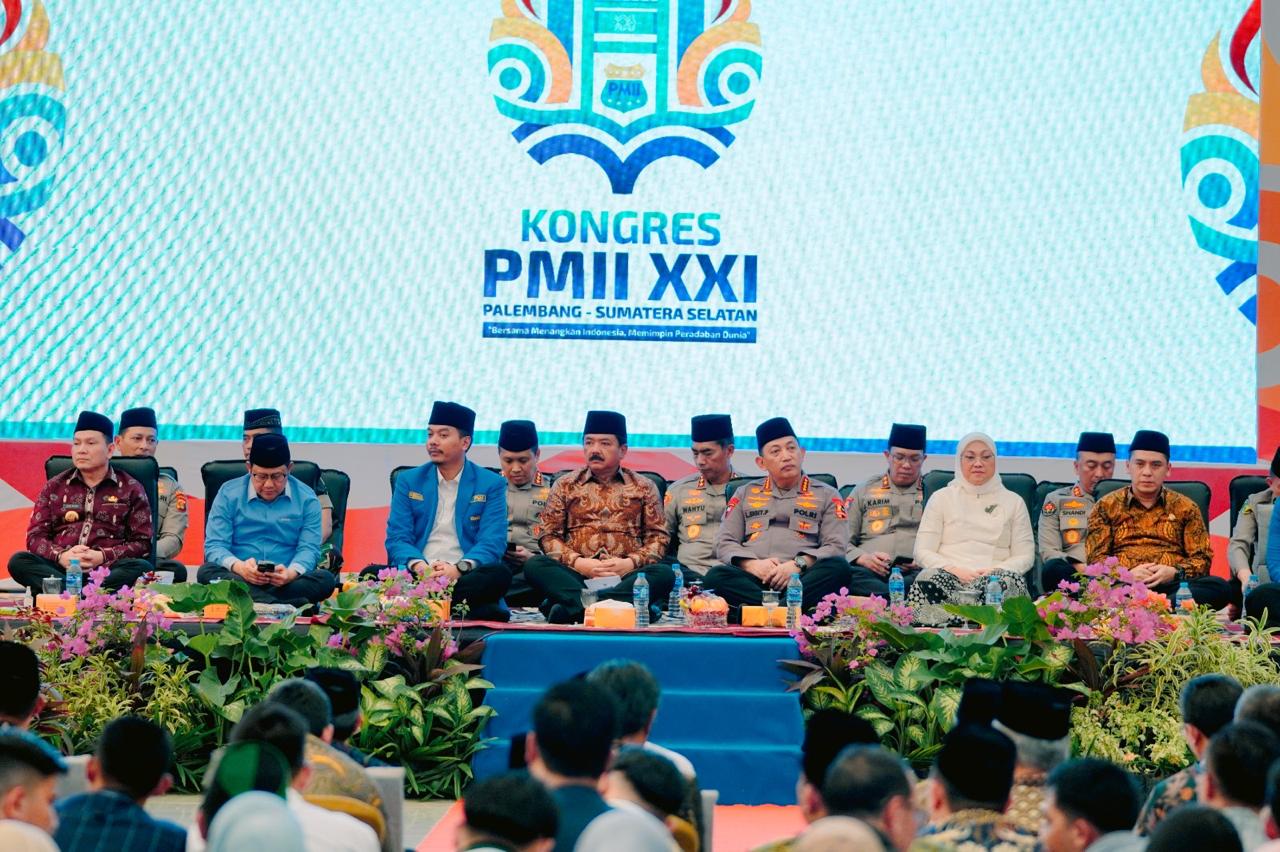 Palembang | HSB – Kapolri Jenderal Polisi Drs. Listyo Sigit Prabowo mendampingi Menteri Politik, Hukum, dan Keamanan (Menkopolhukam) Hadi Tjahjanto menghadiri Kongres XXI Pergerakan Mahasiswa Islam Indonesia (PMII) di Palembang, Sumatra Barat (Sumbar). Kehadiran keduanya disambut langsung oleh Ketua PB PMII Muhammad Abdullah Syukri.
