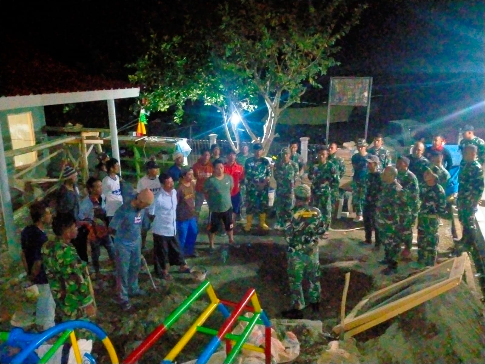 Kami Satgas bersama masyarakat bahu membahu bergotong royong dan bekerja sama dalam menyelesaikan tugas perehaban, terlebih kami ingin segera mewujudkan mimpi Pelajar Anak Usia Dini (PAUD) Mekar Melati yang selalu ikut membantu dalam proses pengerjaan dan bercerita kepada Ibunya bahwa “Ummi Iraha beresna sakola Aa ?” (Ibu kapan beresnya sekolah saya).