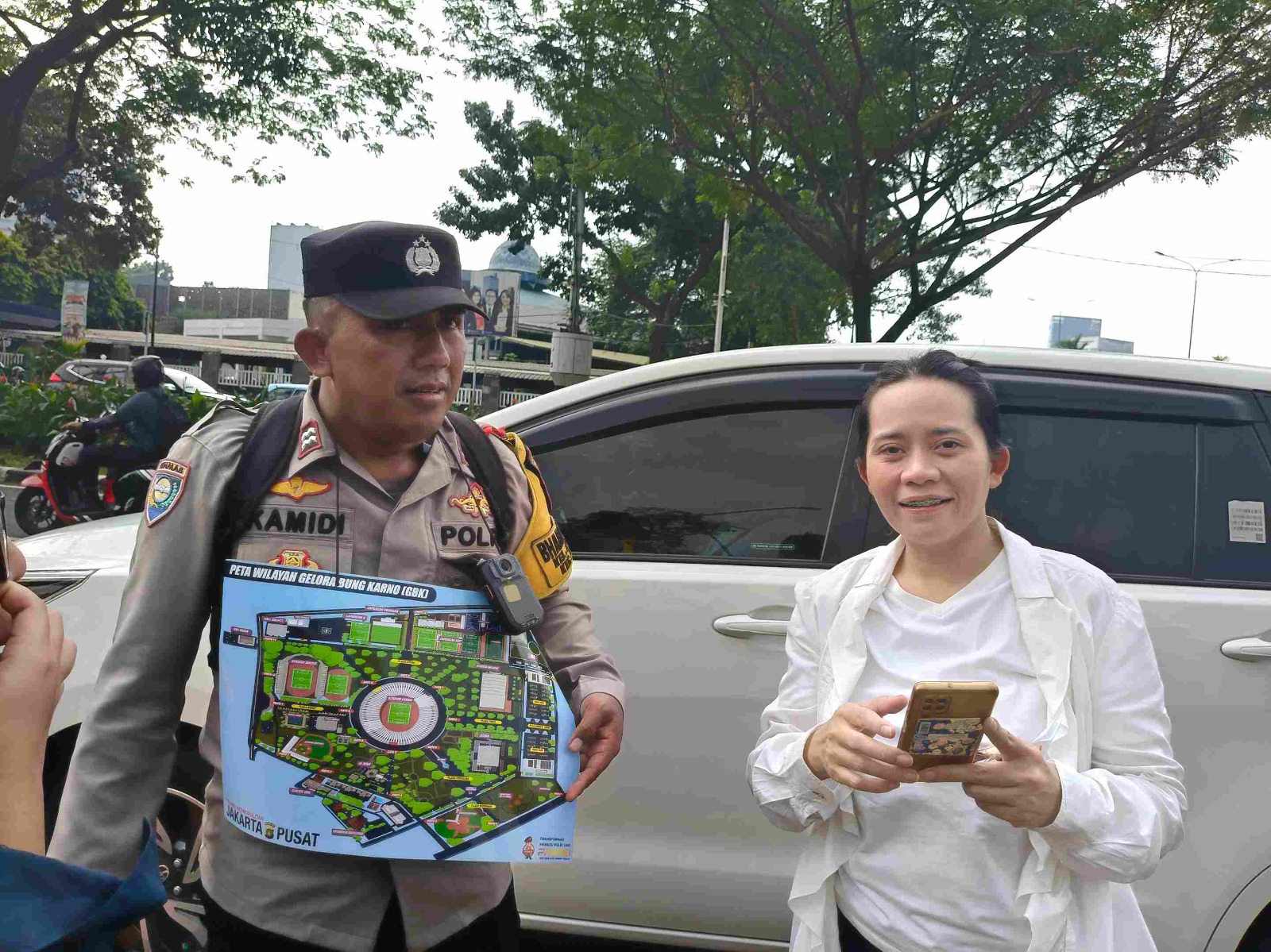 Bantu Jemaat Misa, Polisi Berkalung Denah Acara Berkeliling Di GBK