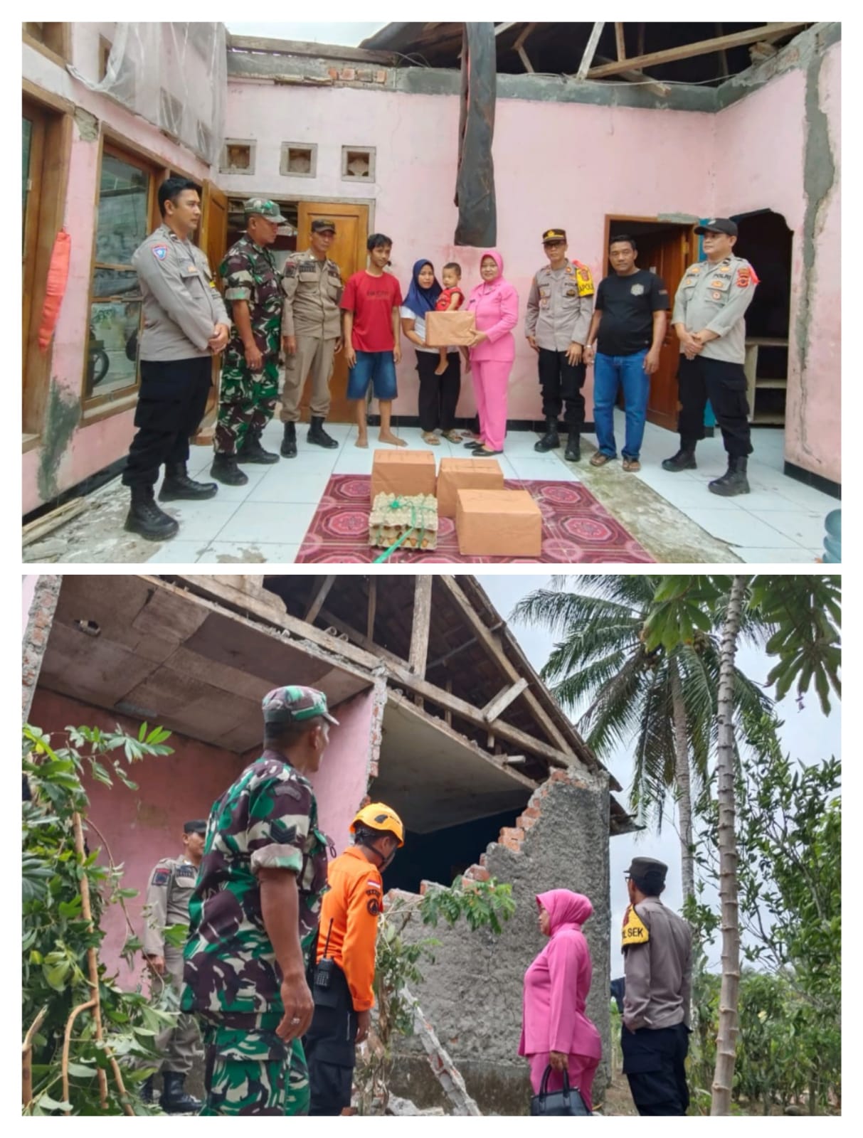 Kapolsek Tegalbuleud Polres Sukabumi Bersama Forkopimcam Berikan Bantuan Sembako kepada Korban Rumah Ambruk