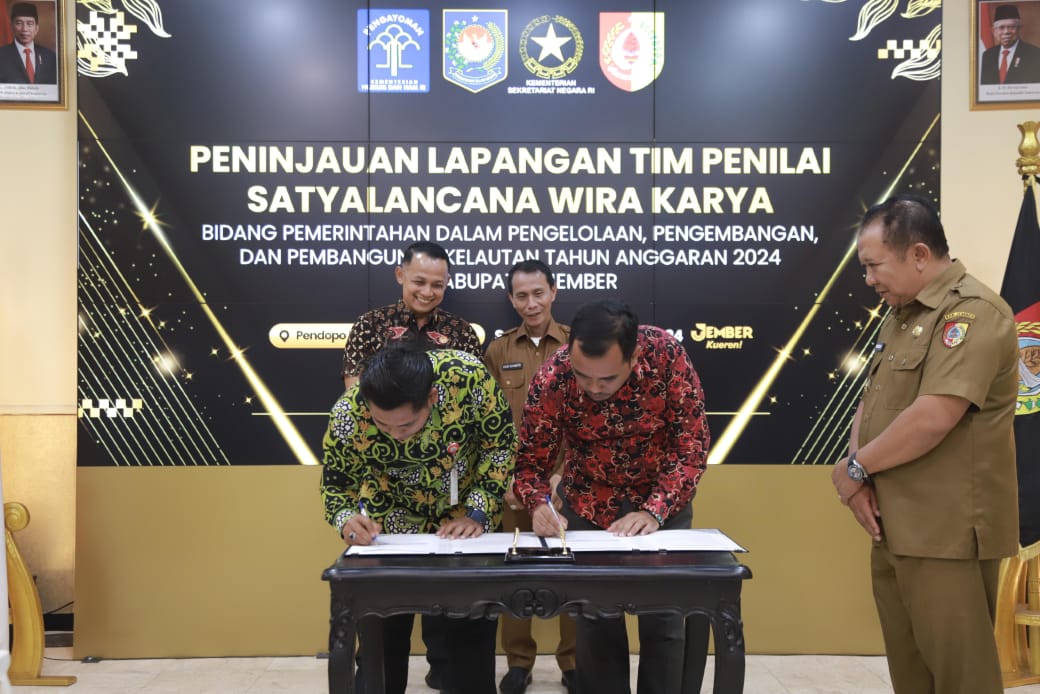 Jember (9/9) — Direktorat Jenderal Bina Administrasi Kewilayahan, Kementerian Dalam Negeri bersama Sekretariat Militer Presiden, Kementerian Sekretariat Negara, melaksanakan verifikasi lapangan di Kabupaten Jember sebagai salah satu tahapan pengusulan Tanda Kehormatan Satyalancana Wira Karya Bidang Pemerintahan Dalam Pengelolaan, Pengembangan dan Pembangunan Kelautan Tahun 2024 sesuai Permendagri Nomor 41 Tahun 2016. Verifikasi lapangan dilakukan untuk memperoleh gambaran langsung dari program unggulan calon penerima, yaitu Bupati Jember atas nama Ir. H. Hendy Siswanto, S.T., IPU., ASEAN Eng.