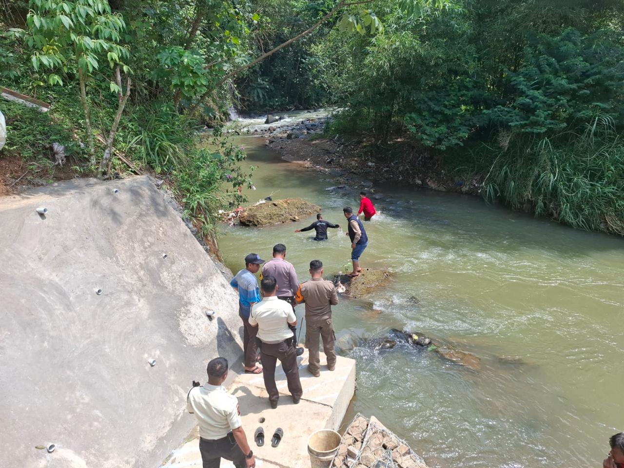 Polsek Caringin Bersama Instansi Terkait Cek Lokasi TKP Adanya Penemuan Mayat Bayi Jenis Kelamin Laki-Laki Di Sungai Cisadane