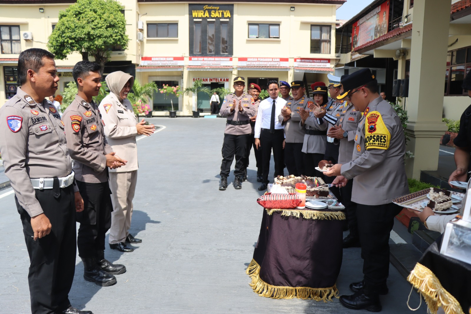 Perayaan ulang kepada tahun anggota Polres Brebes, dilaksanakan usai pelaksanaan apel pagi di lapangan Mapolres Brebes, Selasa (1/10/2024).