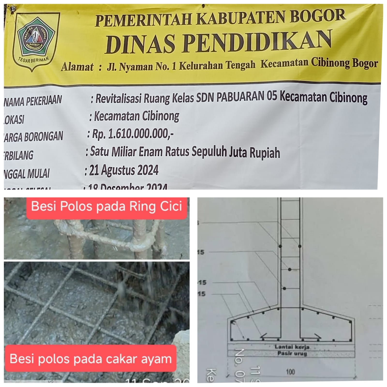 Bogor | HSB – Penggunaan material besi beton pada cakar ayam dan ring cincin di proyek RKB SDN Pabuaran 5 patut dipertanyakan. Pasalnya, pihak kontraktor menggunakan besi polos. Sementara acuan pada gambar perencanaan menggunakan besi ulir/sirip.