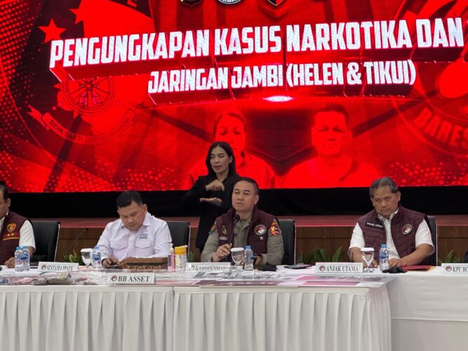 “Tidak berhenti disitu, tim gabungan juga menangkap terhadap orang-orang yang ada kaitannya dengan peredaran narkoba di wilayah Jambi yang dilakukan oleh tersangka H. Adapun jumlah orang yang yang dilakukan penangkapan di Jambi sebanyak tiga orang yakni DS, TM dan MA pada 10 Oktober,” kata Wakabareskrim Irjen Asep Edi Suheri saat menggelar konferensi pers di Gedung Bareskrim, Rabu (16/10).