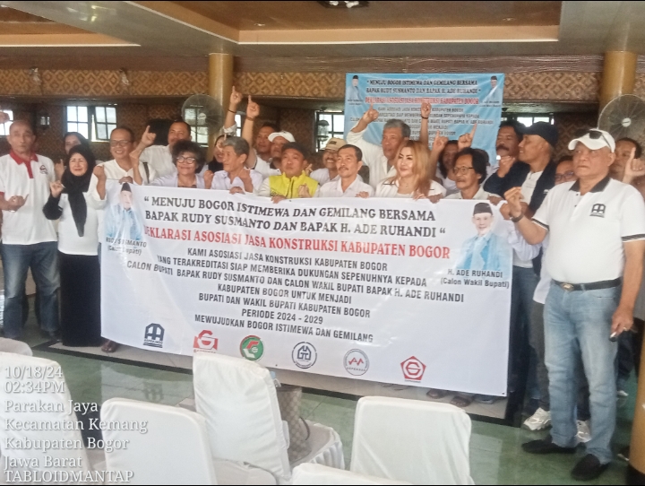 “KamiGabungan enam (6) Asosiasi juga menegaskan komitmen untuk berperan aktif dan siap berpartisipasi dalam mewujudkan Bogor Istimewa bersama dengan pasangan Cabup-Cawabup pilihan kami, Rudy-Ade. Kami pun berkeyakinan, dengan Ridy-Ade lah komunikasi, diskusi dan silaturahmi antara Bupati-Wakil Bupati Bogor dengan Asosiasinya Jasa Konstruksi makin intens dan lebih baik lagi kedepan nanti,” imbuhnya.