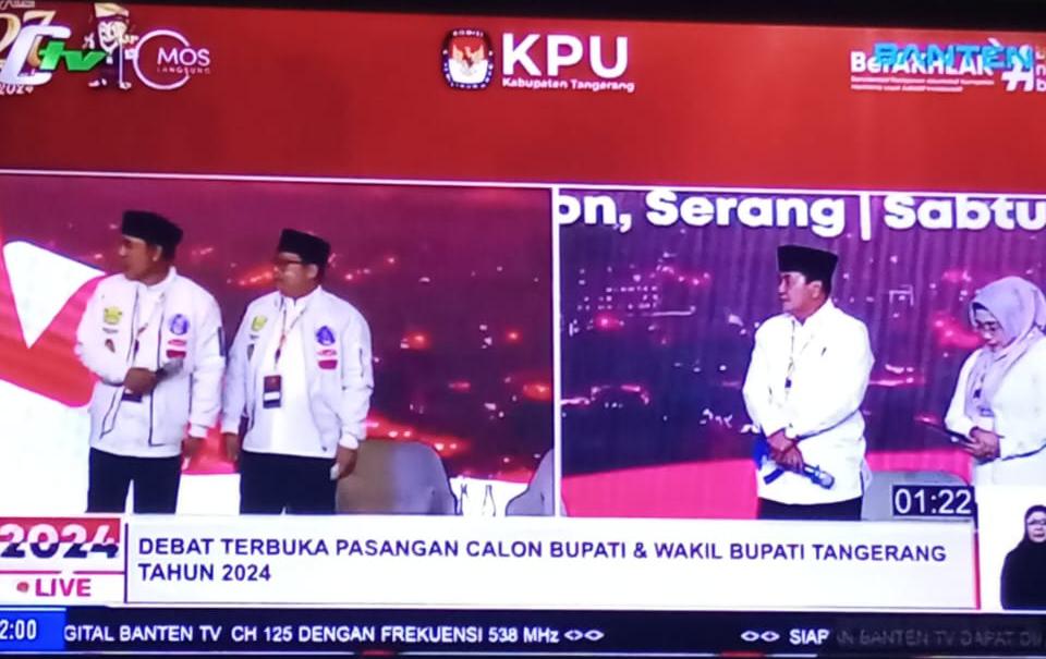 Tangerang | HSB – Komisi Pemilihan Umum (KPU) Kabupaten Tangerang menggelar Debat Terbuka pasangan Calon Bupati (Cabup) dan Calon Wakil Bupati (Cawabup) Kabupaten Tangerang Tahun 2024, yang di ikuti 3 pasangan calon, yakni nomor urut 1, Mad Romli-Irvansyah, nomor urut 2, Maesyal-Intan dan nomor urut 3, Zulkarnain-Lerru, yang di selenggarakan di salah satu hotel di Kota Serang, pada Sabtu (19/10/2024)