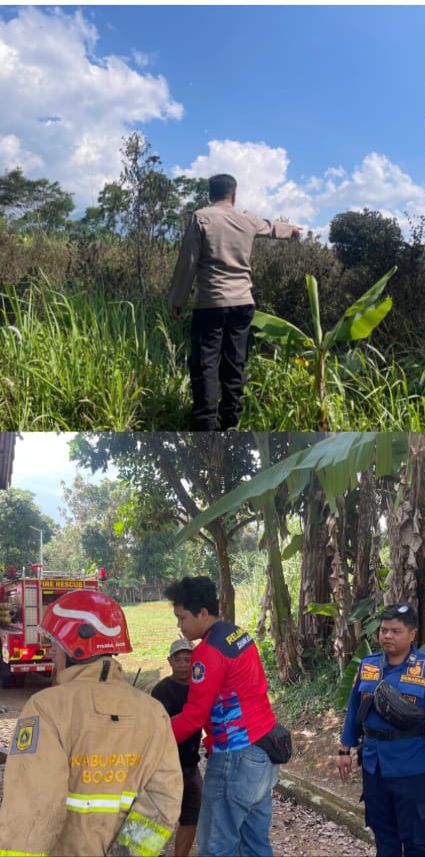 Polsek Megamendung Bersama Instansi Terkait Tangani Olah TKP Terkait Kebakaran Lahan Kosong Berhasil Dipadamkan Dalam Waktu Singkat