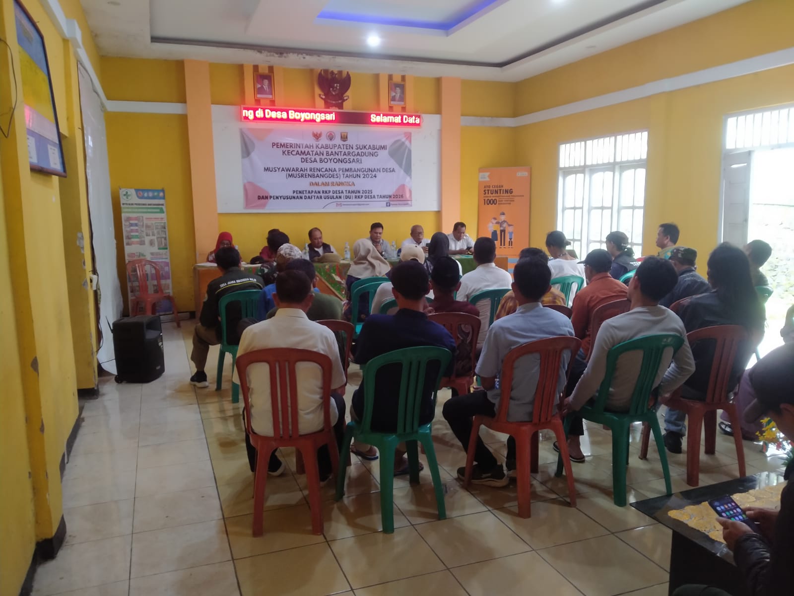 Usai melaksanakan musrenbangdes, Kades Boyongsari Deden Suhendar.S.ip menyampaikan berbagai kegiatan pembangunan tahunan dalam mengalokasikan anggaran dana desa, termasuk pembangunan dari luar sektoral, seperti dari dinas pertanian dan Perkim hingga dispora kabupaten Sukabumi.