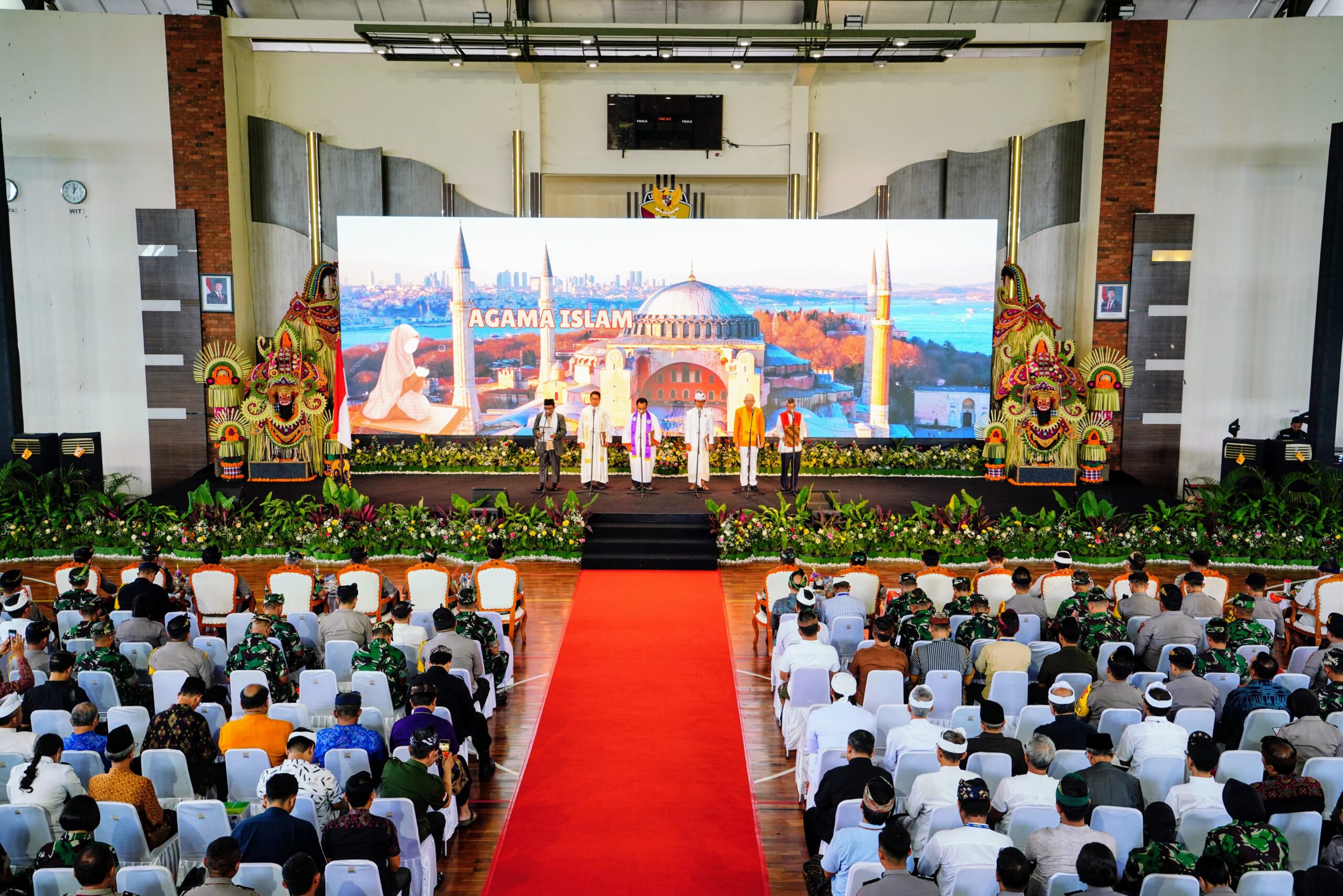 Acara doa bersama lintas agama bersama TNI-Polri dan masyarakat Bali ini digelar di GOR Yudomo, Praja Raksaka Kepaon, Denpasar, Bali, Selasa (19/11/2024). Hadir pula Panglima TNI Jenderal Agus Subiyanto.