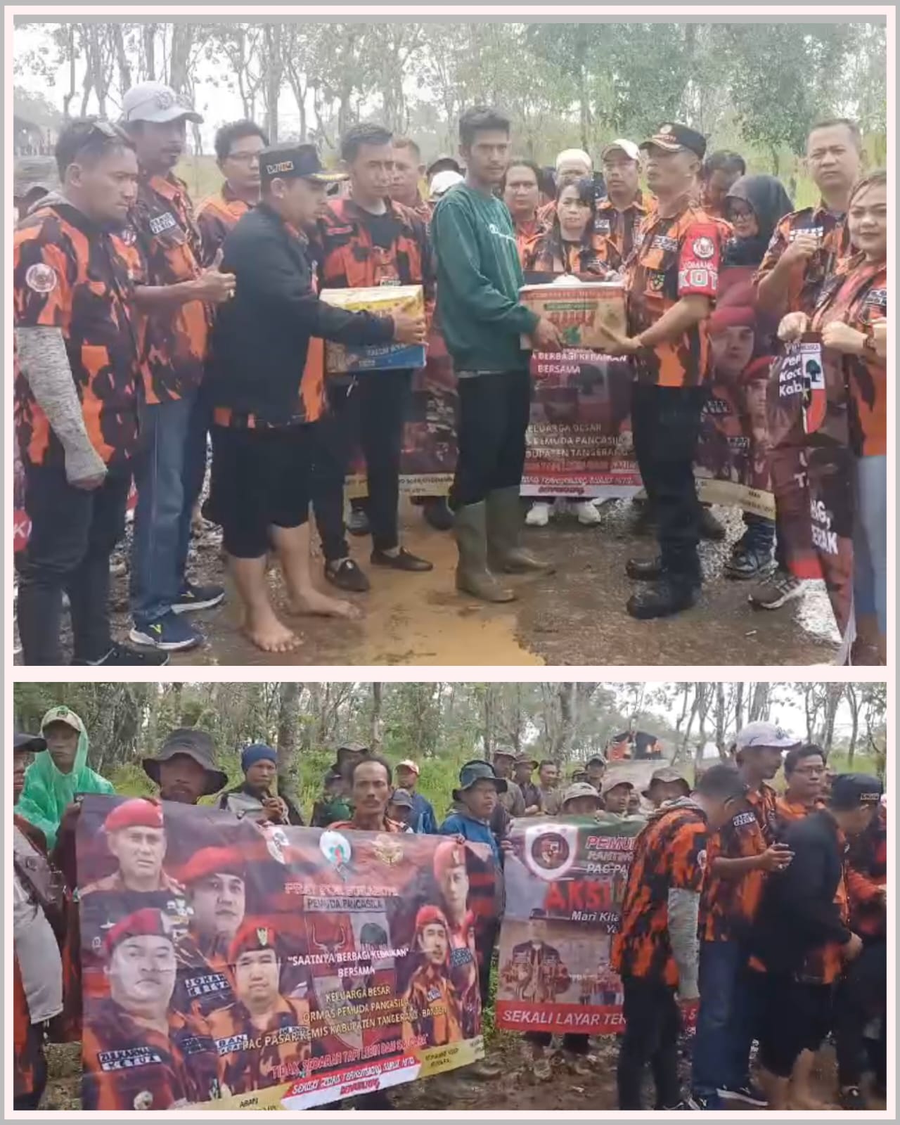 Bantuan berupa mie instan, (sembako) langsung diserahkan ke warga terdampak bencana banjir bandang, Tanah Longsor oleh Dankoti HARYADI dan ABAN selaku sekretaris MPC Pemuda Pancasila Kabupaten Tangerang.