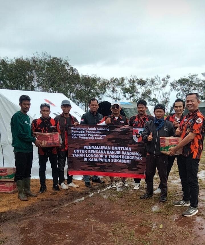 ULA YUDA, Selaku Ketua PAC Pemuda Pancasila Kecamatan Pagedangan bersama seluruh jajaran dan Srikandi cepat tanggap salurkan bantuan korban bencana Kabupaten Sukabumi. ULA YUDA menjelaskan ini adalah bentuk kepedulian Kami sebagai Ormas untuk sedikit meringankan beban para warga terdampak terkena Longsor.”Jelasnya.