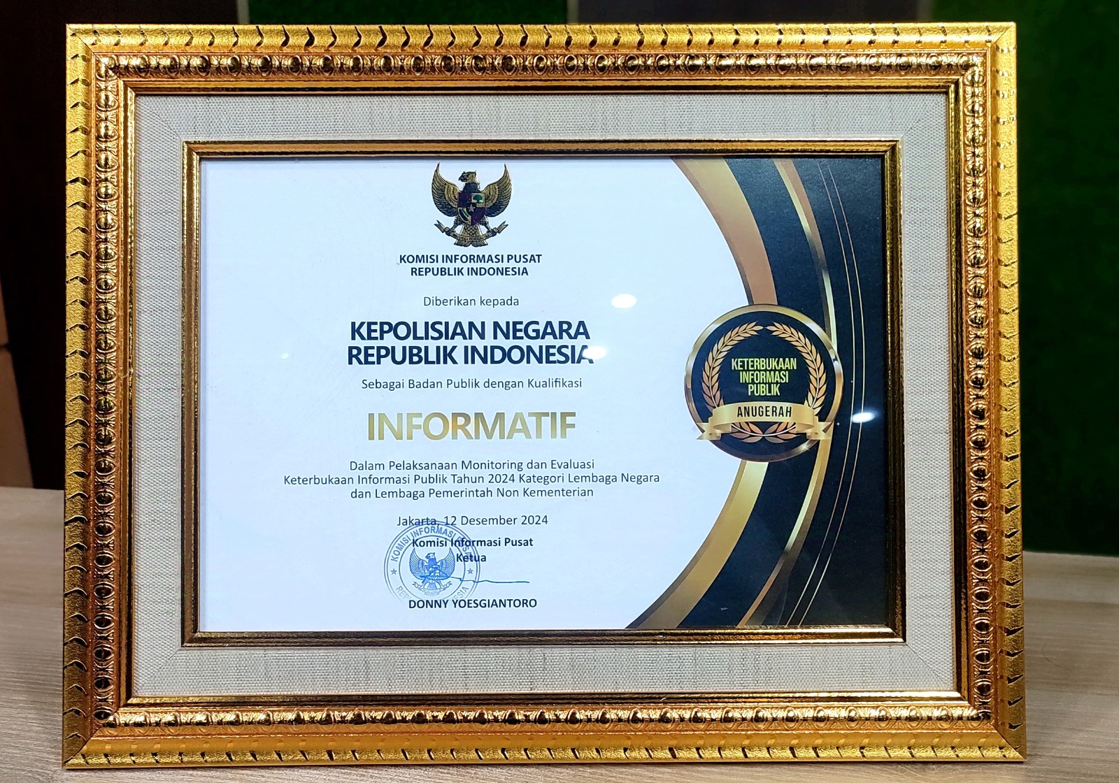 Jakarta | HSB – Polri meraih peringkat Tertinggi Ke-2 (dua) kualifikasi Informatif kategori Lembaga Negara dan Lembaga Pemerintah Non Kementerian dalam Penghargaan Keterbukaan Informasi Publik (KIP) 2024. Dalam kategori tersebut, hanya ada tiga Lembaga Negara dan Lembaga Pemerintah Non Kementerian yang mendapatkan penghargaan.