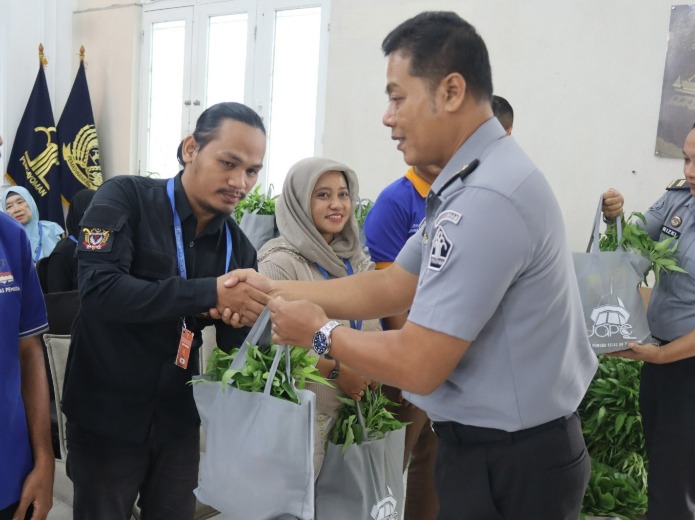 Tangerang, INFO_PAS β Lapas Pemuda Kelas IIA Tangerang ikut serta dalam kegiatan panen raya dan penyerahan bantuan sosial (bansos) secara serentak kepada warga binaan dan masyarakat sekitar bersama Menteri Imigrasi dan Pemasyarakatan, Agus Andrianto, Selasa (24/12). Kegiatan ini dilaksanakan dalam rangka mendukung 13 Program Akselerasi Menteri Imigrasi dan Pemasyarakatan, yaitu memberdayaan warga binaan untuk mewujudkan ketahanan pangan melalui pembinaan kemandirian dan pembimbingan yang dilaksanakan pada satuan kerja Pemasyarakatan.
