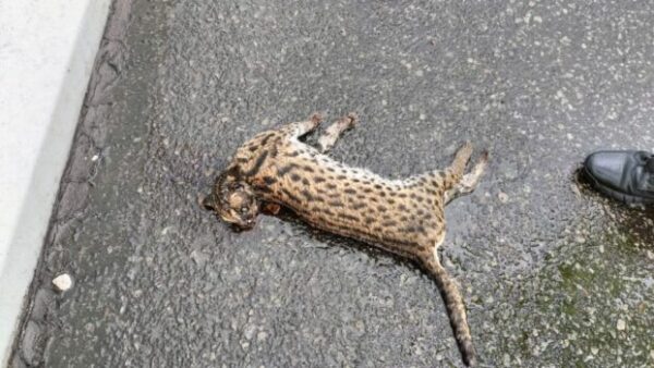 PEKANBARU – Seekor macan akar ditemukan tewas di Tol Dumai-Pekanbaru KM 78 B, Rabu (25/12/2024) sekitar pukul 12.30 WIB. Hewan yang diperkirakan berusia dewasa ini diduga menjadi korban tabrakan kendaraan yang melintas di ruas jalan tol arah Pekanbaru.