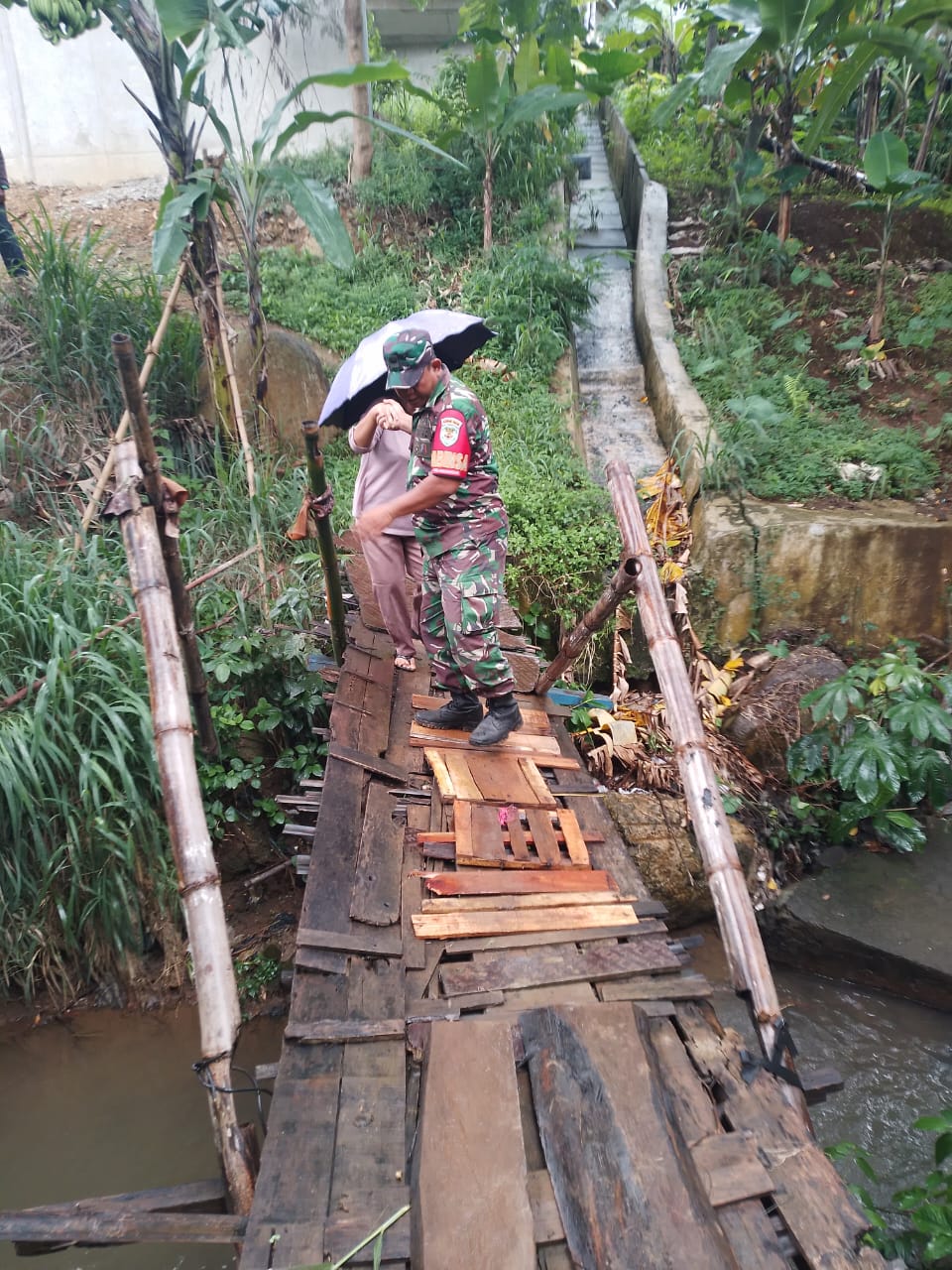 Kota bogor | HSB – Babinsa kelurahan Muarasari. Serda Ade Syahroni, Koramil 06-02/Bogor Selatan, Kodim 0606/Kota Bogor,lakukan kegiatan bergotong royong bersama- sama dengan warga.untuk perbaiki jembatan yang akan rubuh,pasalnya akses jalan pintas penghubung antara kelurahan muara sari dan kelurahan kerta jaya.kampung balubur Rt 01 Rw 05 kelurahan muarasari kecamatan Bogor selatan.di karenakan sudah sering memakan korban yang berjatuhan saat menyebrangi jembatan tersebut apalagi saat ini sedang musim hujan,Jumat (27/12/2025).