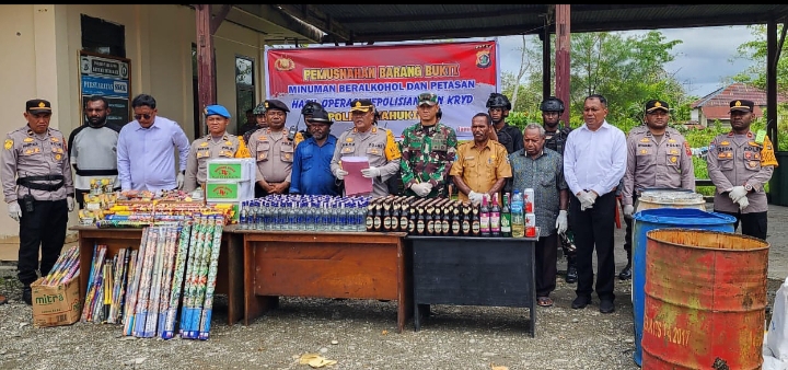 Yahukimo, 6 Januari 2025 – Dalam rangka menyambut tahun baru 2024 dan menjaga keamanan serta ketertiban masyarakat, Kodim 1715/Yahukimo dan Polres Yahukimo bersama jajaran Pemda Yahukimo, tokoh agama, dan tokoh adat setempat melakukan aksi pemusnahan minuman keras hasil dari patroli gabungan. Kegiatan ini dilaksanakan di halaman kantor Polres Yahukimo dan dihadiri oleh berbagai elemen masyarakat.