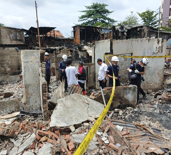 Kebakaran yang terjadi sebelumnya di kawasan padat penduduk ini diduga bermula dari salah satu bangunan di lokasi tersebut. Tim Puslabfor melakukan pemeriksaan untuk mengetahui penyebab pasti kebakaran yang merusak sejumlah rumah warga.
