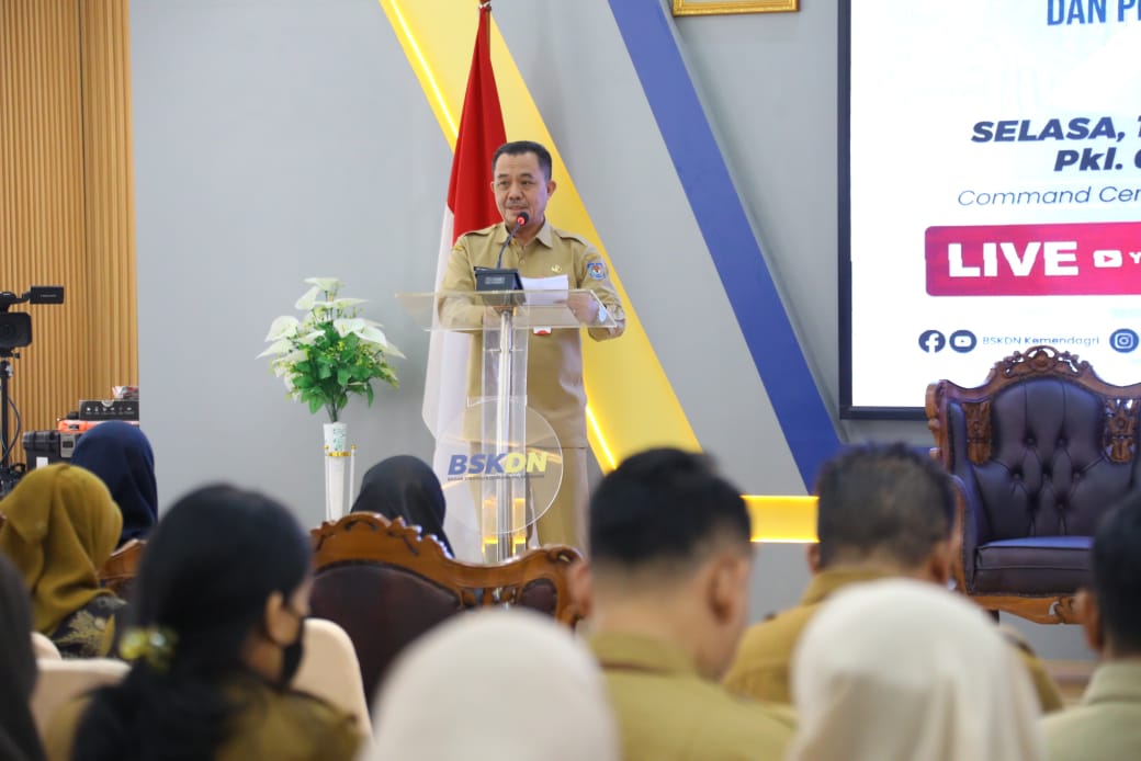 “Survei Status Gizi Indonesia menunjukan angka _stunting_ di Indonesia sebesar 21,5% pada tahun 2023. Salah satu penyebab utamanya adalah sanitasi buruk dan tingginya paparan patogen yang berdampak pada kesehatan anak. Untuk itu butuh intervensi berbasis bukti yang lebih komprehensif,” ujar Kepala BSKDN Kemendagri Yusharto Huntoyungo saat membuka acara Forum Diskusi Aktual (FDA) bertajuk “Strategi Implementasi WBE dalam Upaya Penurunan Stunting dan Perbaikan Gizi di Indonesia” bertempat di ruang _Command Center_ BSKDN, pada Selasa, 11 Maret 2025.