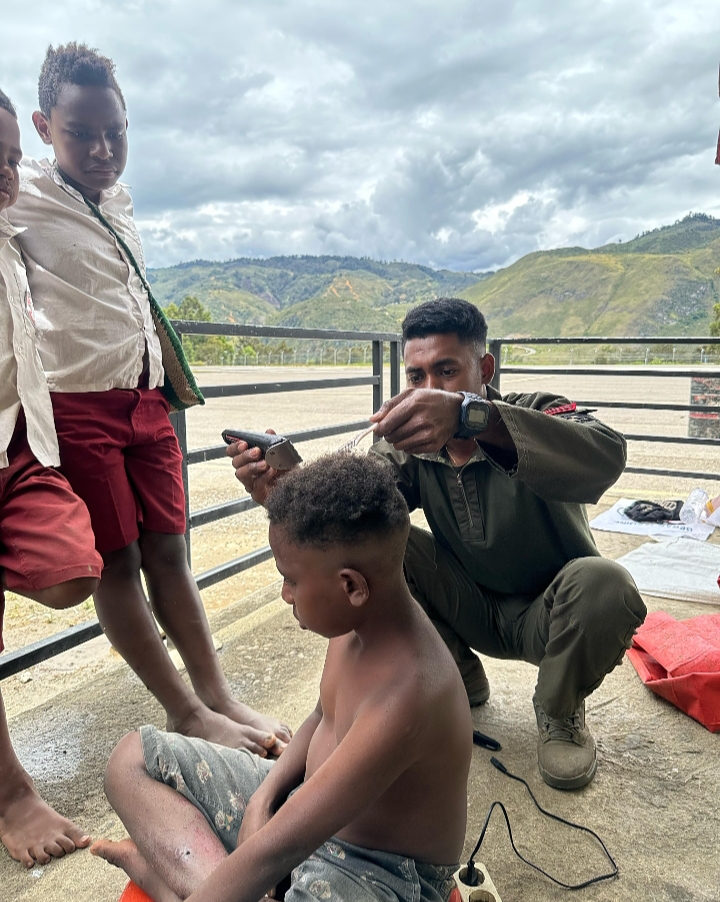 Lanny Jaya – Personel Satuan Tugas (Satgas) Tindak Operasi Damai Cartenz 2025 menunjukkan kepedulian terhadap masyarakat dengan mengadakan kegiatan cukur rambut gratis bagi anak-anak di Kabupaten Lanny Jaya, Papua Pegunungan.