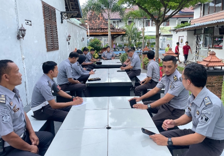Surakarta – Kepala Rutan Kelas I Surakarta Kantor Wilayah Direktorat Jenderal Pemasyarakatan Jawa Tengah menggelar kegiatan briefing bersama pejabat struktural di area food court Rutan Surakarta, Senin (17/3). Acara ini bertujuan untuk mempererat koordinasi sekaligus membahas berbagai agenda dan program kerja yang akan dilaksanakan dalam waktu dekat.