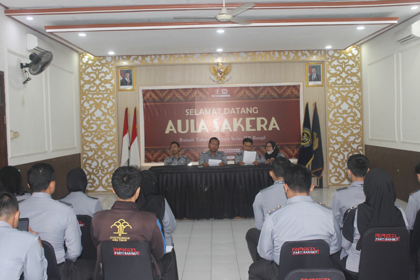 Pasuruan – Dalam rangka menyambut Hari Raya Idul Fitri serta peringatan Hari Bhakti Pemasyarakatan ke-61, Rumah Tahanan Negara (Rutan) Kelas IIB Bangil menggelar rapat dinas pada Selasa (18/03) di Aula Utama Rutan. Rapat ini dipimpin langsung oleh Plt. Kepala Rutan Bangil, Muhammad Faishol Nur, serta didampingi oleh pejabat struktural dan diikuti oleh seluruh pegawai staf administrasi.