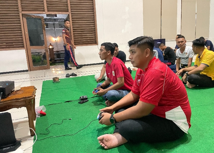 Surakarta – Kepala Rutan Kelas I Surakarta Kantor Wilayah Direktorat Jenderal Pemasyarakatan Jawa Tengah, Bhanad Shofa Kurniawan menunjukkan semangat kebersamaan dan sportivitas dengan turut serta dalam lomba E-sport Pro Evolution Soccer (PES) yang diikuti oleh para pegawai Rutan Surakarta. Kegiatan ini merupakan rangkaian dari peringatan Hari Bakti Pemasyarakatan ke-61, Senin (14/04).