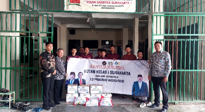 Surakarta – Rutan Kelas I Surakarta Kantor Wilayah Direktorat Jenderal Pemasyarakatan Jawa Tengah menggelar kegiatan bakti sosial di Lembaga Kesejahteraan Sosial Anak (LKSA) “Ihsan Sakeena Surakarta” sebagai bentuk kepedulian terhadap sesama. Pada kesempatan ini, Kepala Rutan Kelas I Surakarta, Bhanad Shofa Kurniawan diwakilkan oleh Kepala Subseksi Administrasi dan Perawatan, Yudha Nugraha serta pejabat struktural lainnya, Jumat (25/04).