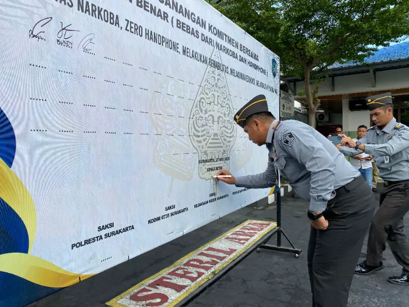Surakarta β Rutan Kelas I Surakarta Kantor Wilayah Direktorat Jenderal Pemasyarakatan Jawa Tengah menindaklanjuti arahan Direktur Jenderal Pemasyarakatan, Brigjen Pol. Drs. Mashudi dengan menggelar kegiatan Deklarasi dan Pencanangan Komitmen Bersama βRutan BENARβ (Bebas dari Narkoba dan Handphone), bertempat di halaman utama rutan, Selasa (27/05). Kegiatan ini merupakan bagian dari upaya penguatan integritas serta komitmen mewujudkan rutan yang bersih, aman, dan bebas dari barang terlarang.
