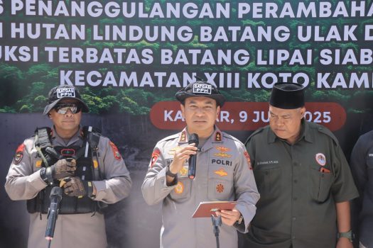 KAMPAR – Kepolisian Daerah Riau menyatakan perang terhadap kejahatan lingkungan, khususnya perambahan hutan. Hal ini ditegaskan Kapolda Riau, Irjen Pol Hery Heryawan dalam rilis kasus perambahan hutan lindung di Desa Balung, Kecamatan XIII Koto Kampar, Senin (9/6/2025).