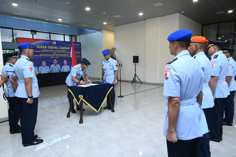 Makassar – Komandan Lanud (Danlanud) Sultan Hasanuddin, Marsma TNI Arifaini Nur Dwiyanto, M.Han, memimpin langsung upacara Serah Terima Jabatan (Sertijab) Kepala Dinas Logistik (Kadislog) dari Kolonel Tek Luqman Hakim., S.Pd., M.Int.Sy., kepada Letkol Tek Adi Mulia., S.E., M.I.Pol., dan jabatan Kepala Dinas Potensi Dirgantara (Kadispotdirga) dari Kolonel Pas I Komang Doni Ariyasa Wirayudha kepada Letkol Pom I Nyoman Swardita., S.H., M.I.Pol. bertempat di Ruang Kedatangan Base Ops Lanud Sultan Hasanuddin, Makassar, Kamis (31/7/2025).
