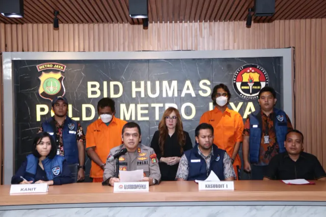 Kasubdit 1 Ditressiber PMJ AKBP Rafles Langgak Putra Menyampaikan para tersangka ditangkap di wilayah Jawa Timur, pada Kamis 24 Juli 2025.