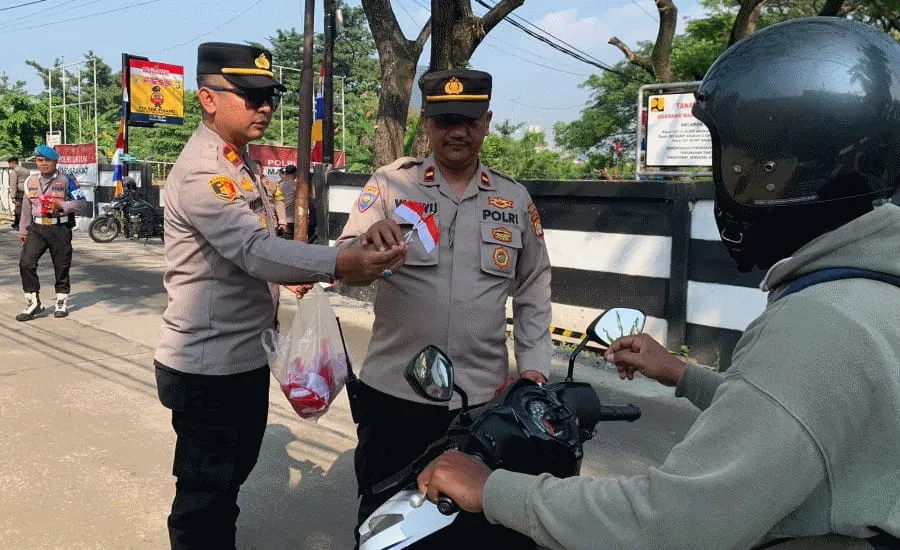 Sapa pengendara dan lingkungan warga, Polisi serukan jiwa nasionalisme cinta tanah air, cinta merah putih.