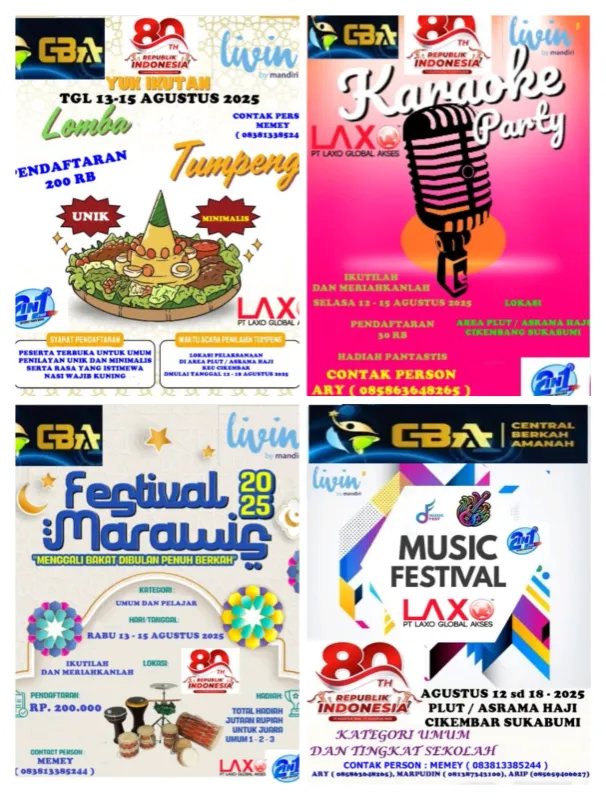 Sukabumi – Dalam rangka menyambut dan memeriahkan HUT RI ke 80 penggiat koperasi lintas profesi bersama Dinas KUMKM UPTD-PLUT akan menggelar Bazar satu pekan, dengan menampilkan berbagai hasil produk jajanan para pelaku UMKM melalui stand-stand yang sudah disediakan panitia, acara satu pekan ini juga akan dihibur dengan pentas seni dari lintas profesi bebas secara umum.