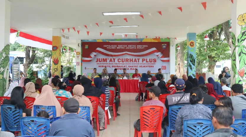 Jakarta Pusat β Dalam rangka memperingati Bulan Kemerdekaan Republik Indonesia, Polsek Metro Menteng menggelar kegiatan bertajuk Jum’at Curhat Plus di RPTRA Borobudur, Kelurahan Pegangsaan, Menteng, Jakarta Pusat, Jumat (22/8/2025).