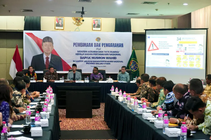 βJadi tugas saya ini sebagai menteri memberikan kepastian dan harapan kepada seluruh jajaran supaya kerja itu mengalami motivasi yang besar,β ujar Menteri Nusron kepada jajaran Kanwil BPN Provinsi Maluku Utara.