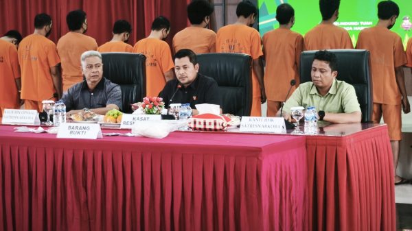 KAMPAR – Polres Kampar menunjukkan komitmennya dalam memberantas peredaran narkoba. Sebanyak 1,247,56 gram sabu hasil tangkapan selama bulan Agustus dimusnahkan dihadapan 16 tersangka, Selasa (26/08).