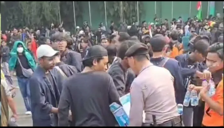 Jakarta – Sebanyak 1.250 Personel Kepolisian diterjunkan untuk mengamankan aksi Unjak Rasa di Gedung MPR/DPR RI. Dalam pengamanan ini seluruh personel ditekankan untuk berlaku humanis kepada massa aksi. Salah satu bentuk aksi humanis yang dilakukan oleh Petugas Kepolisian dengan membagikan air minum sebagai bentuk kepedulian terhadap massa aksi yang tengah menyampaikan pendapat di Jalan Gerbang Pemuda pada Senin sore(25/08/2025)