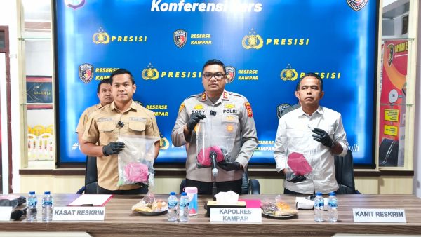 Konferensi pers terkait kasus ini dipimpin langsung oleh Kapolres Kampar, AKBP Boby Putra Ramadhan S didampingi Kasat Reskrim AKP Gian Wiatma Jonimandala dan Kanit Reskrim Iptu Syahrial, Minggu (31/8/2025).