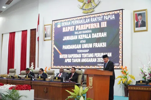 Pj Gubernur Papua Sampaikan Jawaban Atas Pandangan Umum Fraksi-Fraksi DPRP Terkait Raperdasi APBD Perubahan Tahun Anggaran 2025