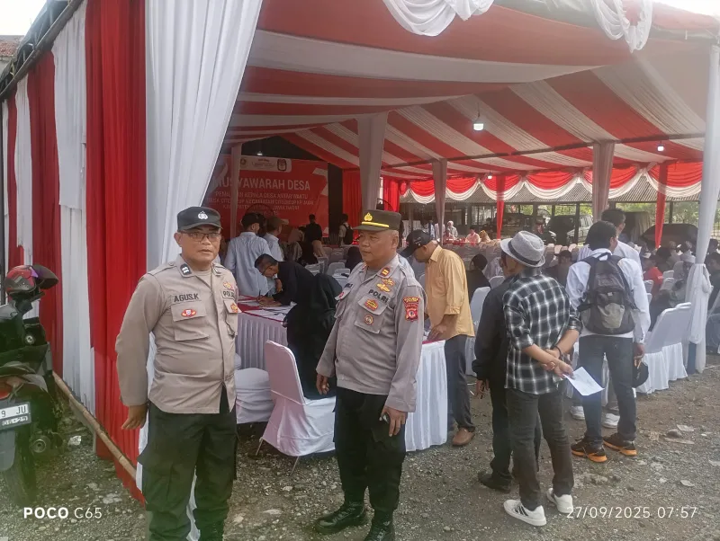 Citeureup – Kapolsek Citeureup Kompol Eddy Santosa, S.Pd., M.H., bersama jajaran Forkopimcam Citeureup menghadiri kegiatan Musyawarah Desa Pemilihan Kepala Desa Antar Waktu (PAW) Desa Citeureup, Kecamatan Citeureup, Kabupaten Bogor, Sabtu (27/09/2025). Kegiatan berlangsung di Kampung Jagal RT 05/01 Desa Citeureup mulai pukul 09.00 WIB hingga selesai.