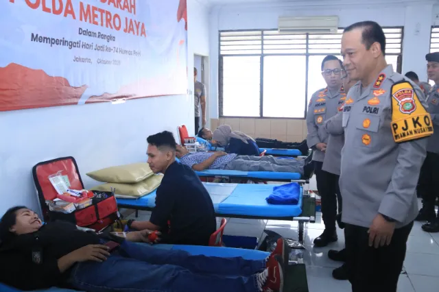 Kapolda Metro Jaya Irjen Pol Asep Edi Suheri bersama Wakapolda Metro Jaya Brigjen Pol Dekananto Eko Purwono serta diikuti oleh para Pejabat Utama Polda Metro Jaya yang turut berpartisipasi dalam kegiatan donor darah. Secara keseluruhan, sebanyak 165 anggota Polda Metro Jaya, termasuk Pejabat Utama, ikut mendonorkan darahnya sebagai bentuk kepedulian sosial terhadap sesama.